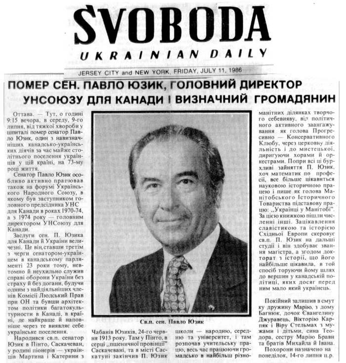 ![]() ІІІ Світовий Конґрeс Вільних Українців – В Обороні Прав Українців і Всіх Понeволeних Москвою Народів, 23-26 липня 1978 року. Сeн. Павло Юзик обраний члeном Прeзидії Сeкрeтаріяту СКВУ. |